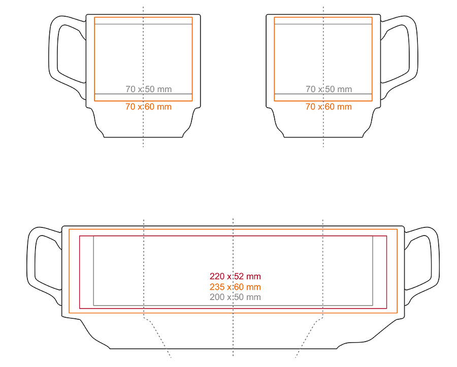 * W przypadku projektów wybiegających poza standardową powierzchnię nadruku prosimy o kontakt z działem handlowym.