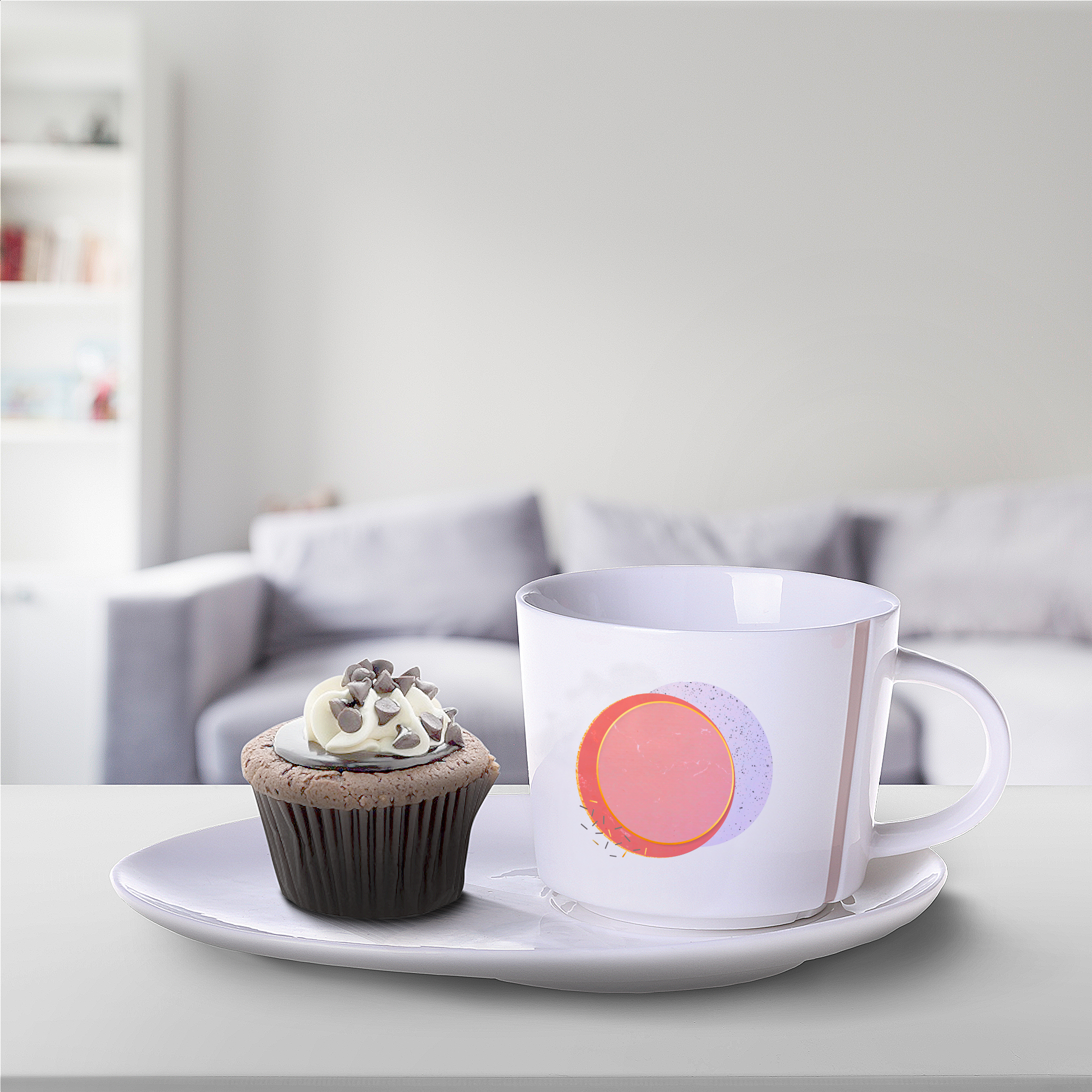 Porcelanowa filiżanka z charakterystycznymi przetłoczeniami z obu stron ucha. Filiżanka dostępna w trzech pojemnościach, ze spodkiem pozwalającym na serwowanie przekąski.