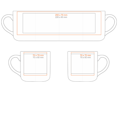 Nadruk na uchu (90x10 mm) Nadruk wewnątrz (ścianka) (50x15 mm) Nadruk na dnie (wewn.) (ø55 mm) Nadruk na spodzie (zewn.) (ø45 mm) Nadruk przez rant Hand Made - malowanie rantu Personalizacja |