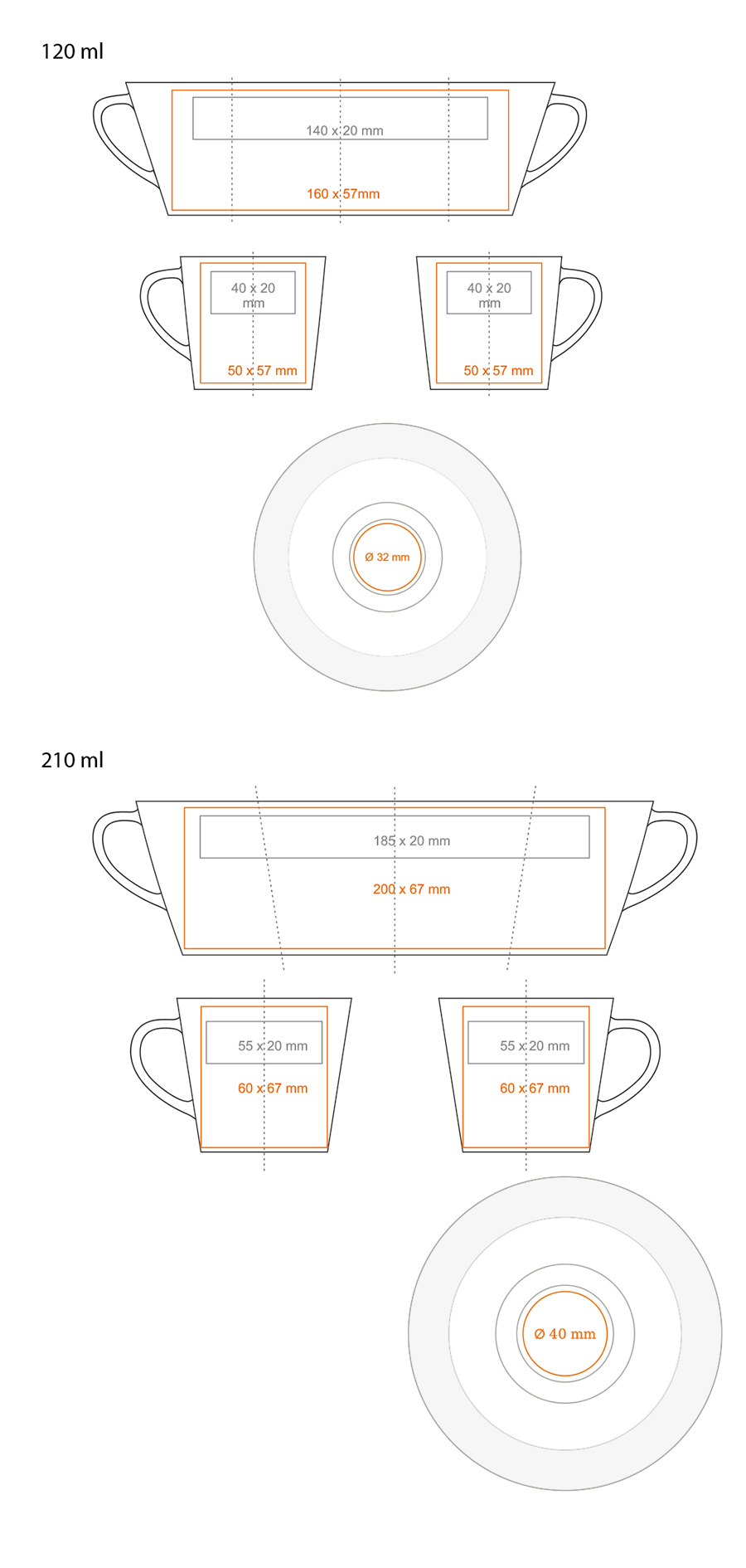 Filiżanka o prostym, klasycznym kształcie. Wykonana z porcelany. Posiada ergonomiczne ucho i duże pole w zakresie nanoszenia zdobień. Występuje w dwóch pojemnościach.