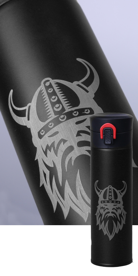 Grawer Laserowy wykonywany jest na metalowych korpusach kubków i butelek termicznych Galaxy, na produktach szklanych oraz na kubkach ceramicznych z kolorowym szkliwem.